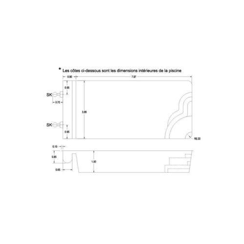 Dimensions Hors tout : 9.20m x 4.20mProfondeur : 1.50m