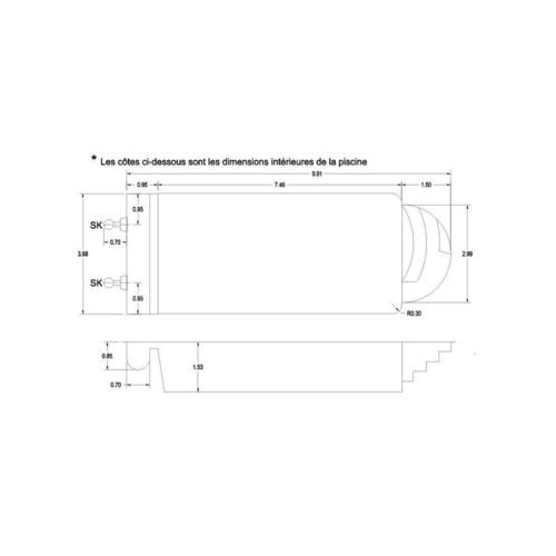 Dimensions Hors tout : 10.20 m x 4.00 mProfondeur : 1.53 m