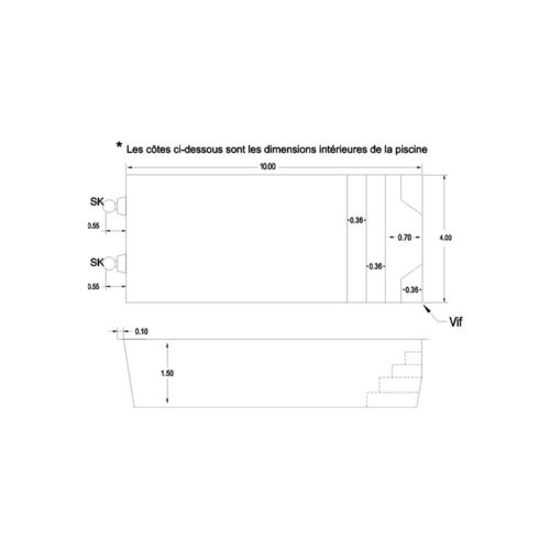 Ces modèles possèdent un large escalier pouvant recevoir nage à contre courant, balnéo, aérothérapie et toutes options. Possibilité de poser un volet hors sol. Rebord polyester renforçé assurant une grande rigidité.