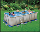 Kit comprenant : 1 système de filtration 3,8 m3/h avec cartouche, 1 échelle hors sol, 1 kit d'entretien, 1 tapis de sol, 1 couverture de protection. Dim. : 5,48 m x 2,74 m x 1,32 m. Capacité en eau 17 m3.Garantie liner 3 mois, filtration 1 an.